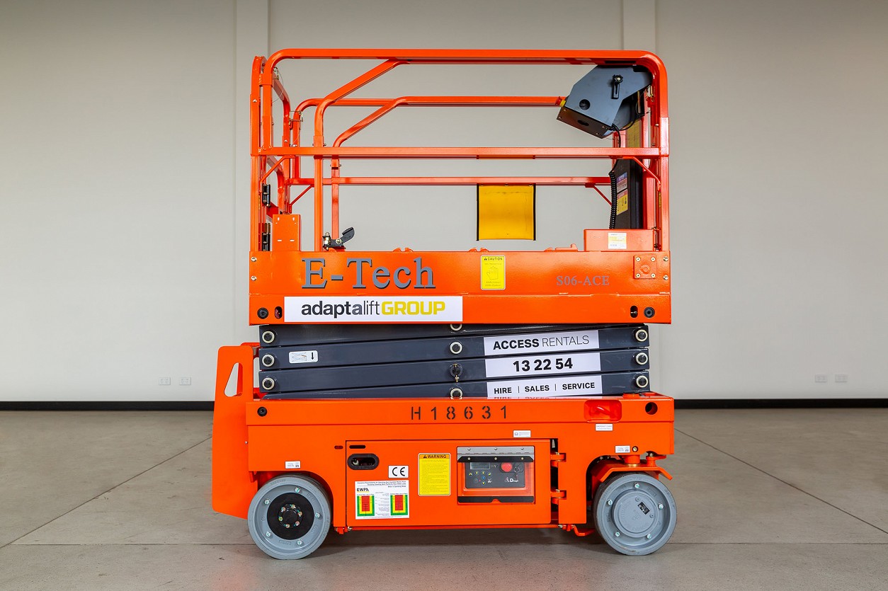 With the platform floor reaching up to 5.8 m and providing a reach height of 7.8 m, the E-Tech S06-ACE Electric Scissor Lift can support up to 230 kg and is jam packed full of standard features including non-marking tyres, tilt sensor and an extendable platform.